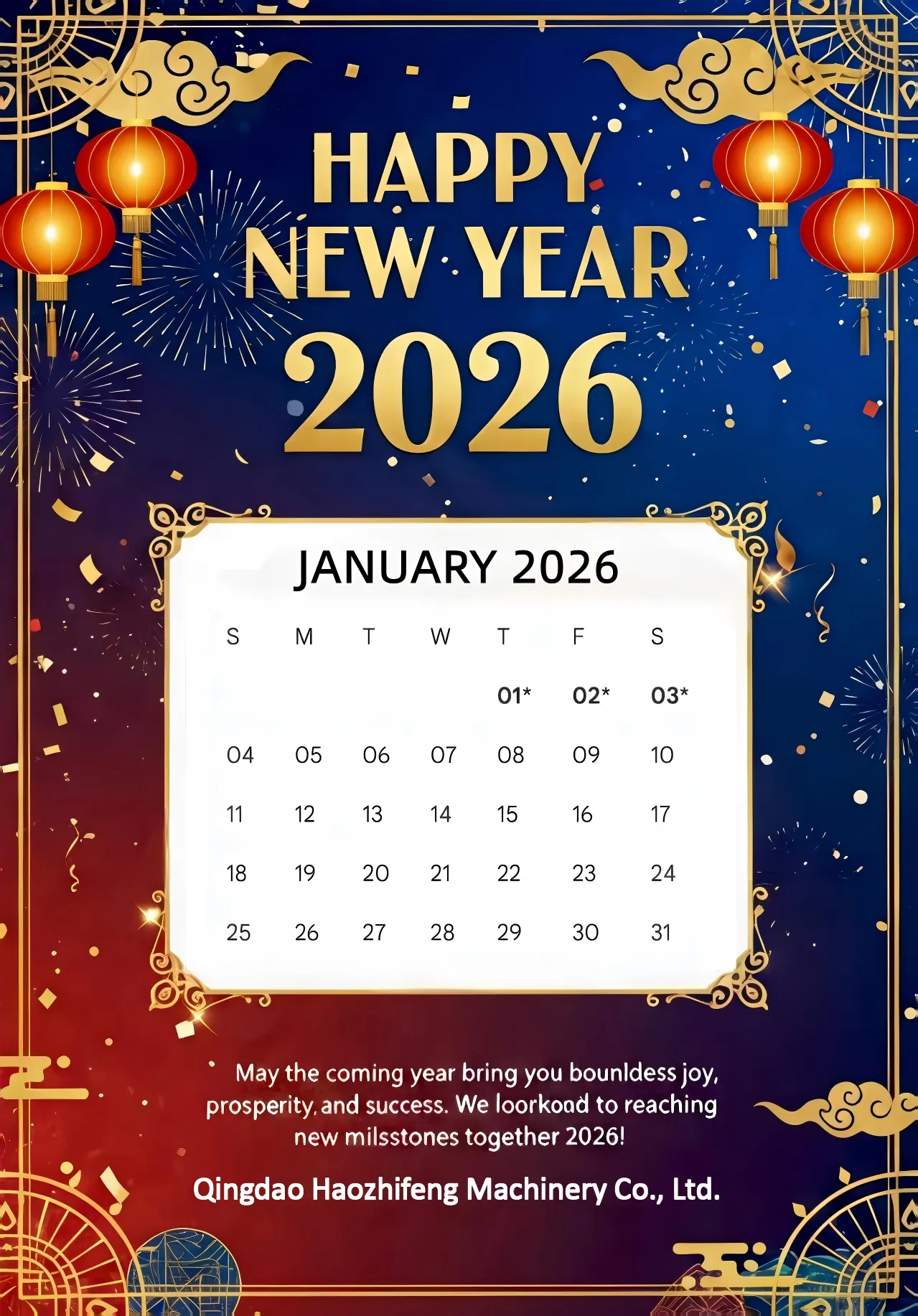 Possa il nuovo anno 2026 portarti gioia, successo e tutta la buona fortuna! Non vediamo l’ora di continuare a lavorare fianco a fianco con voi nel nuovo anno e di realizzare insieme risultati più brillanti.