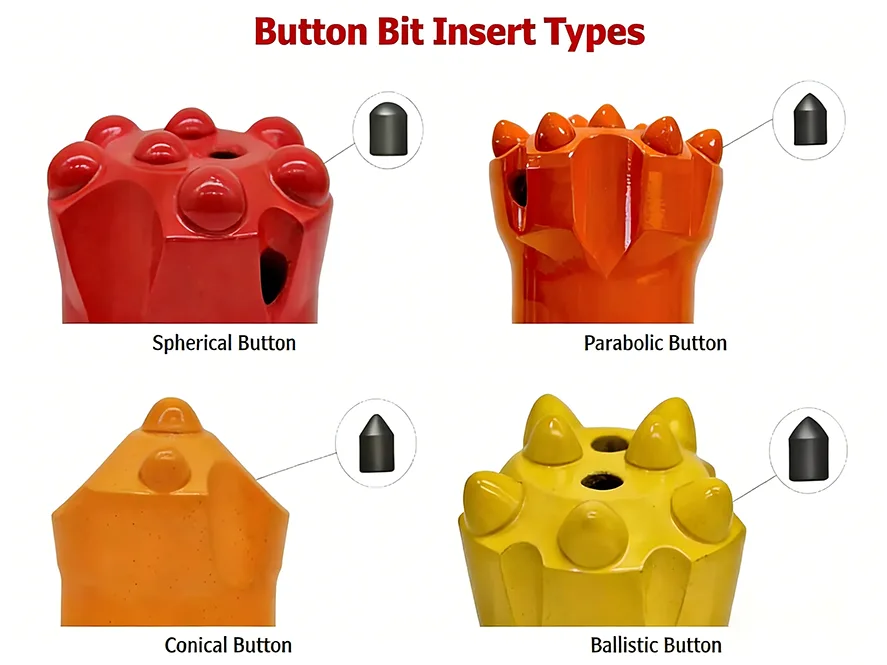 Ampia applicabilità: sviluppata per una varietà di scenari di costruzione pesanti, la punta a bottone per perforazione di roccia funziona in modo affidabile ed efficiente nell'estrazione mineraria, nello scavo di gallerie, nelle palificazioni di fondazione e in altri progetti di ingegneria, offrendo un valore pratico completo.